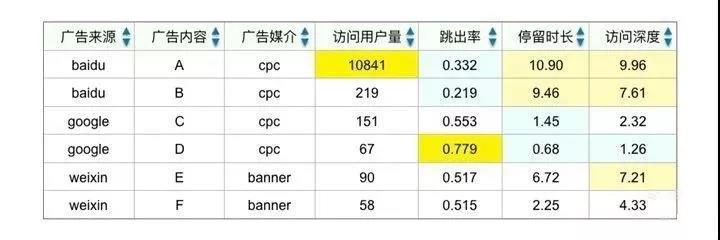 借助 UTM參數,我們對每一次推廣或者投放的廣告進行多維度監測(來源、媒介、名稱、內容和關鍵詞),評估不同渠道獲取新客戶的數量(訪問用戶量、新訪問用戶量)和獲客質量(跳出率、停留時間、訪問深度)。