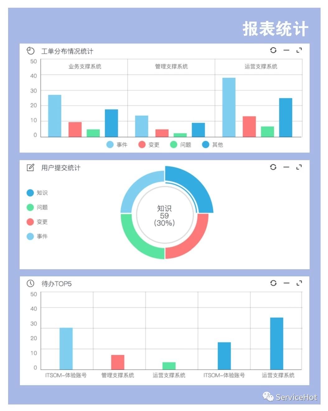 • 建立集中響應的服務臺,提供多渠道接入的工單系統(tǒng),用戶從各個渠道提單申報、撥打電話、發(fā)送郵件,系統(tǒng)自動產(chǎn)生工單記錄,大大降低服務臺壓力,傳統(tǒng)前臺就能升級為服務臺;