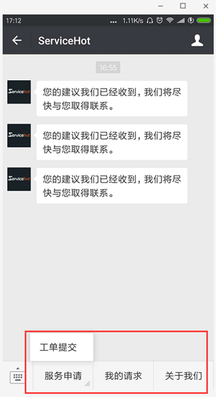 輸入相應的公眾號點擊【+】按鈕,再點擊【關注】按鈕,完成微信公眾號的關注,以后用戶就可以通過微信的方式實現客服工單的提交和處理操作