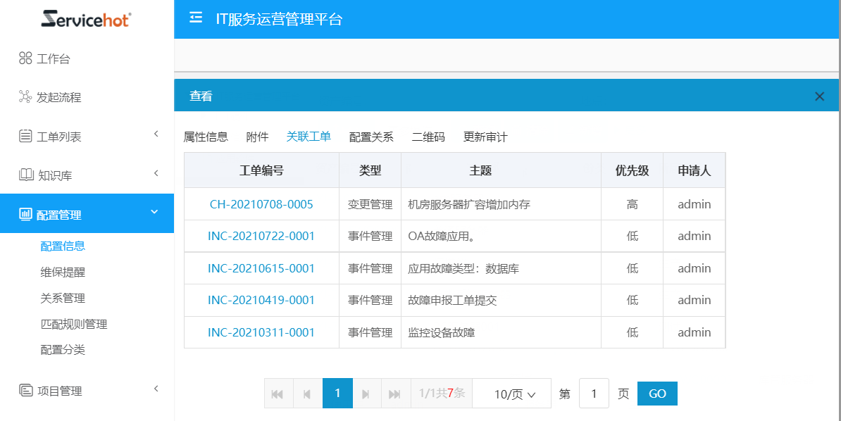ServiceHot ITSM客戶服務管理系統(tǒng)提供基于ITIL的服務流程和工單、提供基于CMDB的資產(chǎn)管理和配置管理、提供項目管理、合同管理等功能。在客戶服務過程中,所有的服務流程與客戶資產(chǎn)關聯(lián),服務臺和工程師可一鍵查看該資產(chǎn)的配置信息,甚至包括資產(chǎn)采購情況、維保日期,歷史故障處理情況等,輕松應對一切疑難雜癥。