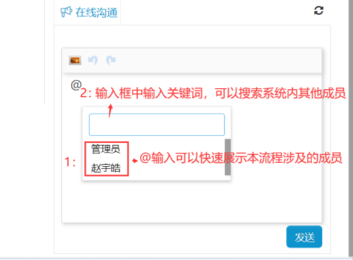 ②輸入框中輸入關鍵字,可以搜索系統內其他成員。
