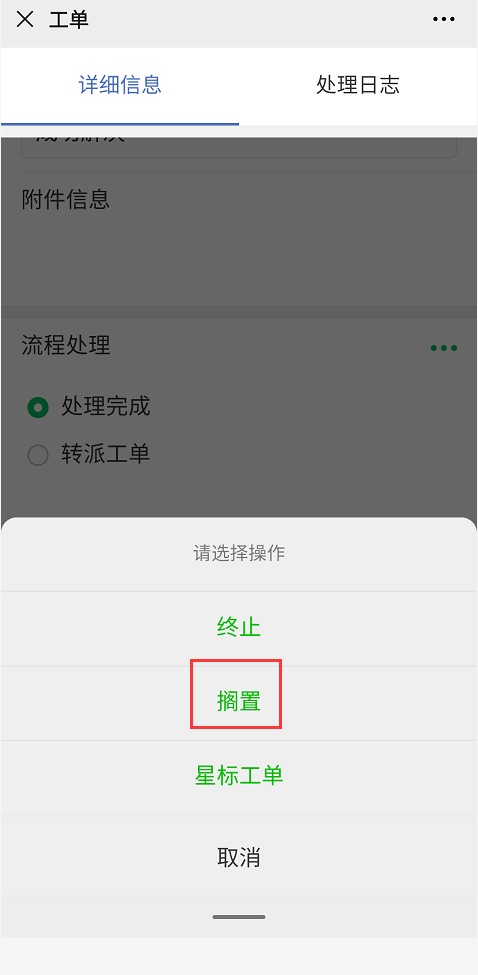 3:移動端:工單流程處理新增更多操作按鈕:催辦,擱置,收回,星標工單等。