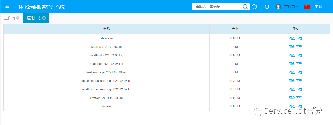 系統(tǒng)怎么應(yīng)用日志管理功能,系統(tǒng)管理員在系統(tǒng)管理頁面,可以直接查詢和下載服務(wù)器最新關(guān)鍵日志文件,便于對服務(wù)器進(jìn)行管理。