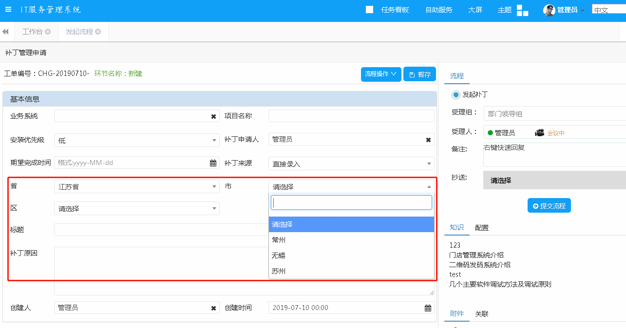 4. 頁面設計器三級級聯功能(如:省、市、區),首先要添加頁面字段,然后給字段進行編碼賦值,在頁面設計器中引用即可。