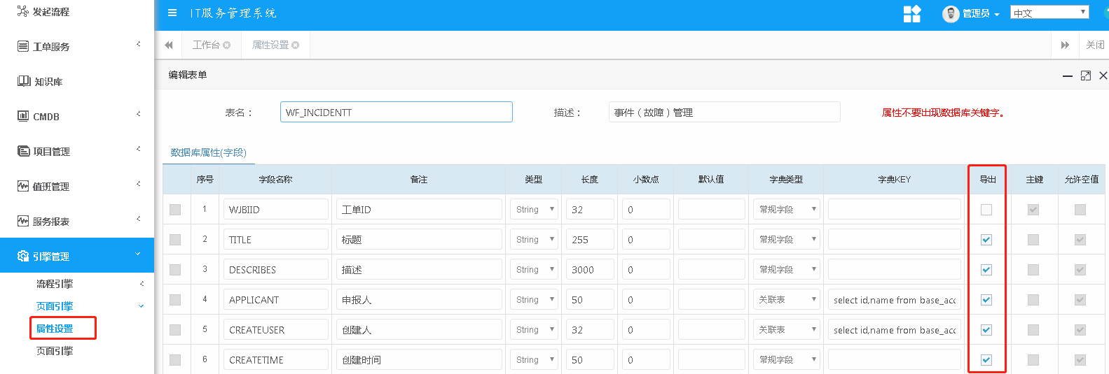 2. 工單自定義導(dǎo)出字段功能,可在設(shè)置頁面字段的時候選擇是否導(dǎo)出該字段,