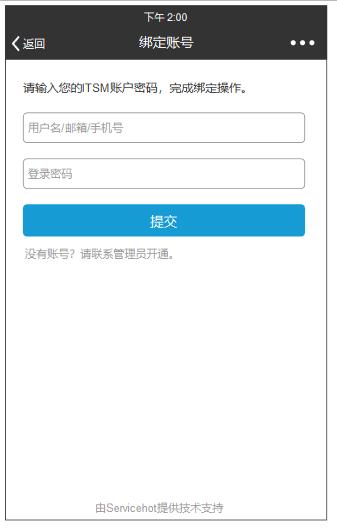通過ITSM賬戶密碼的形式,輸入驗證,進行賬戶綁定。