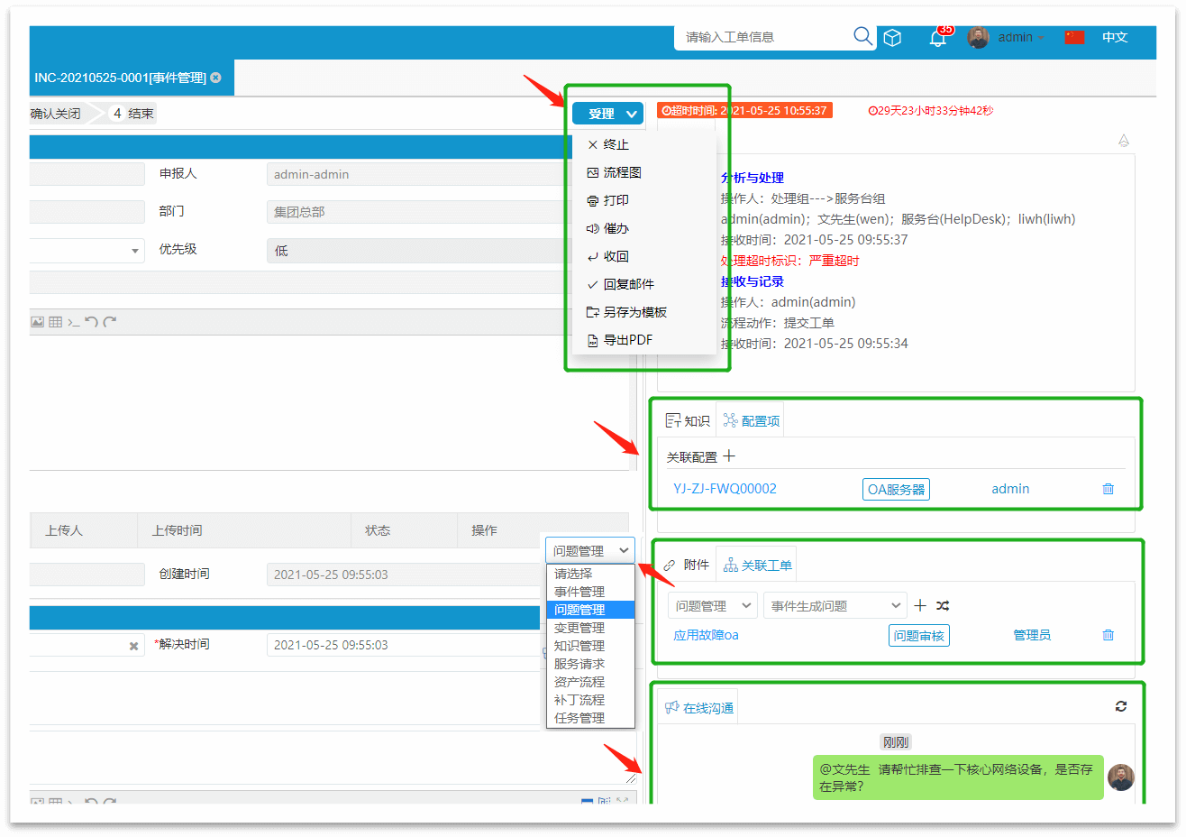 事件管理與項目管理、IT資產、CMDB配置管理自動關聯,故障報修客戶說得清楚,工程師一目了解;