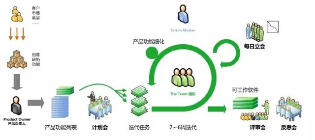 3個角色:產(chǎn)品負(fù)責(zé)人(Product Owner)、Scrum Master、Scrum團隊3個工件