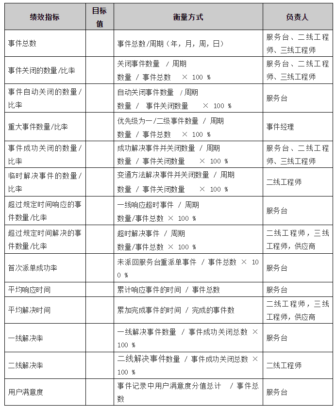 最后看看考核事件流程質量的一些關鍵績效指標: