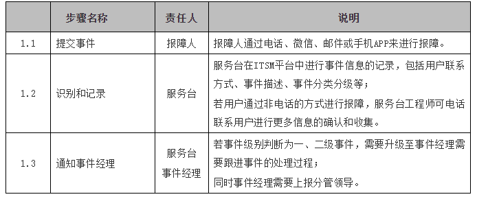 6. 原則上,服務臺、事件經理、指派工程師可根據實際情況對事件分類、分級等信息進行調整。