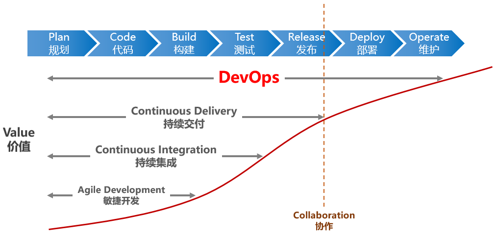 下面這張圖,更明顯地說明了DevOps所處的位置,還有它的價值:
