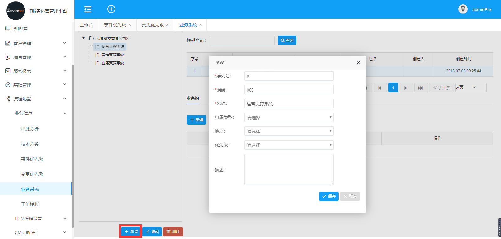 選擇「業(yè)務(wù)信息」>>「業(yè)務(wù)系統(tǒng)」進(jìn)入如下圖新增業(yè)務(wù)系統(tǒng)界面;